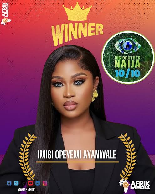 With her historic win, Imisi now joins the exclusive league of Big Brother Naija champions, including Mercy Eke, Laycon, Whitemoney, Phyna, Ilebaye, and others who have left an indelible mark on the reality show’s legacy.
