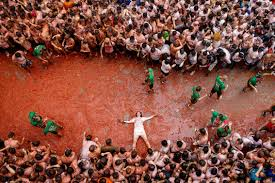Every August, the small town of Buñol in Spain turns into a giant tomato playground during La Tomatina. Thousands of people from around the world gather to throw ripe tomatoes at each other in the streets.