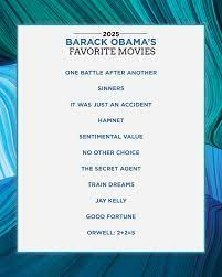 Obama’s favourite movies of 2025 include One Battle After Another, Sinners, It Was Just an Accident, Hamnet, Sentimental Value, No Other Choice, The Secret Agent, Train Dreams, Jay Kelly, Good Fortune, and Orwell: 2+2=5.