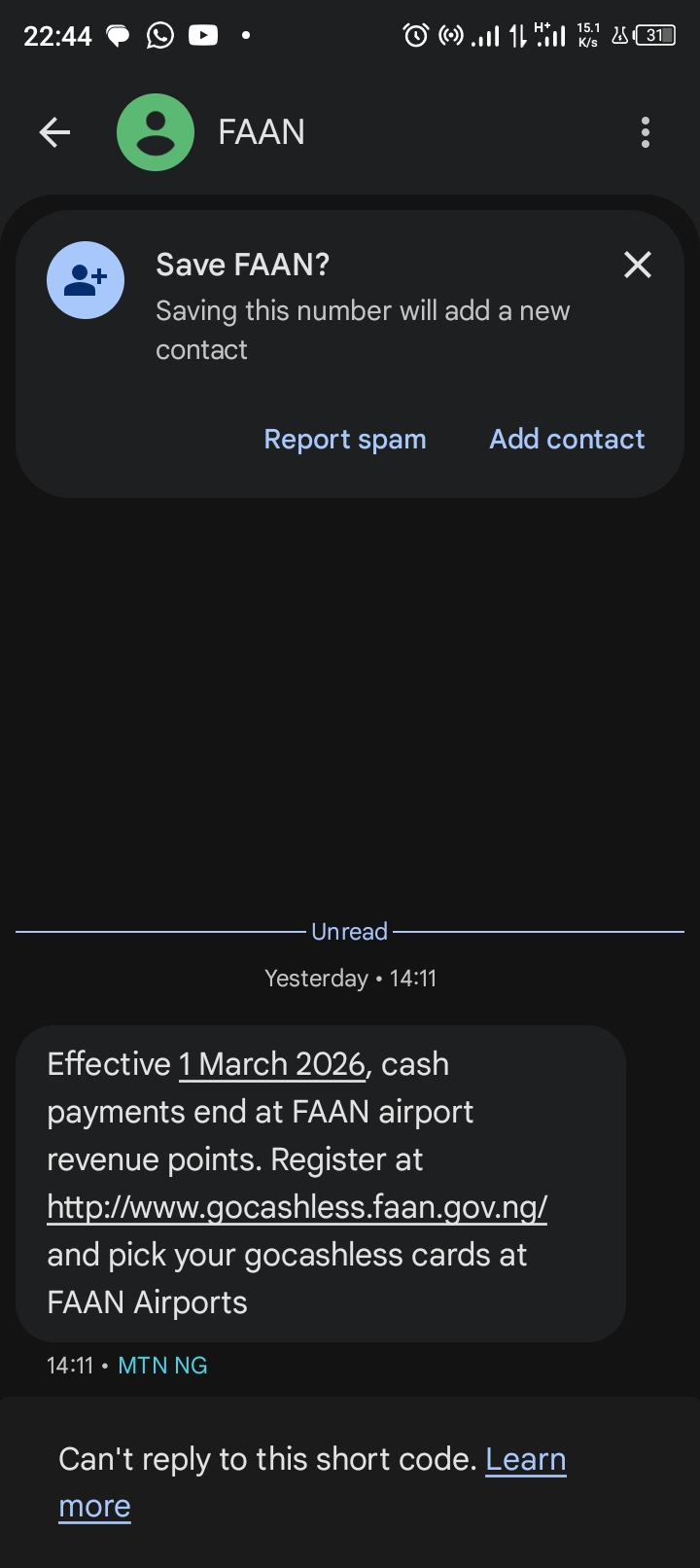 Shortly after the SMS circulation, a fraudulent counter-message also began circulating on social media and messaging platforms, warning recipients not to open the link in the FAAN alert on the grounds that it would drain bank accounts. FAAN labelled this counter-message as false and misleading, stressing that the official SMS is legitimate.