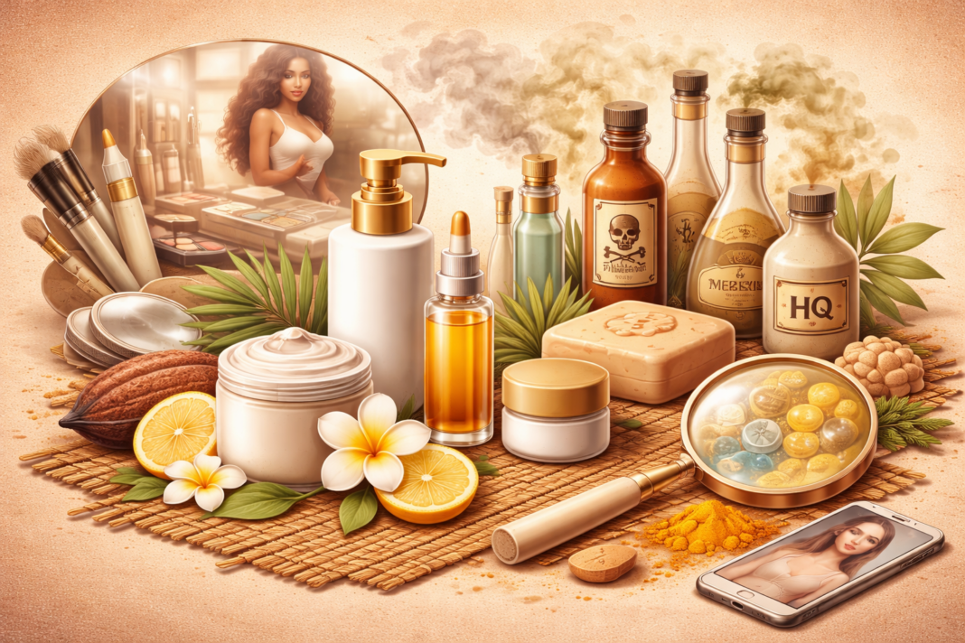 Skin bleaching then became popular not just as a beauty choice, but as a social survival strategy for some people. In many African countries, including Nigeria, some women and even men began to feel that being lighter would give them better chances in life: better jobs, better treatment in public places, better chances in relationships, and more attention on social media. Creams and soaps that promised “brightening,” “lightening,” “toning,” and “glowing” flooded the markets, and bleaching slowly became a billion-dollar industry.